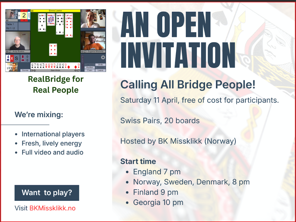 BK Missklikk er hele Norges online bridgeklubb. Klubben ble stiftet 14/06/2021 og har spillinger 7 dager i uka.